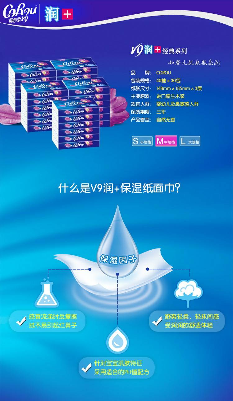 CoRou V9润+系列CoRou云柔系列白色木浆40抽